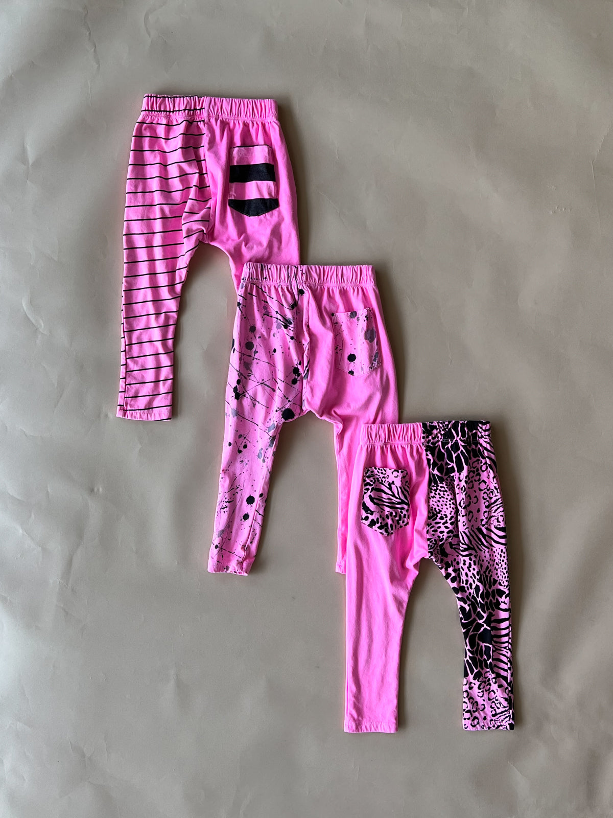 Comfy and edgy harem pant with side pockets and back patch pocket.