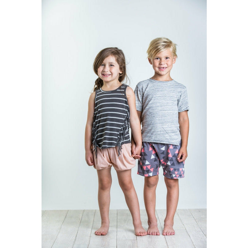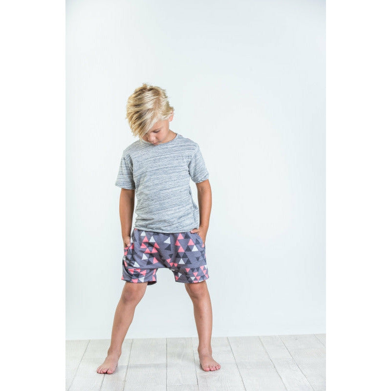 Triangle print shorts. Preshrunk. Made in the beautiful USA.