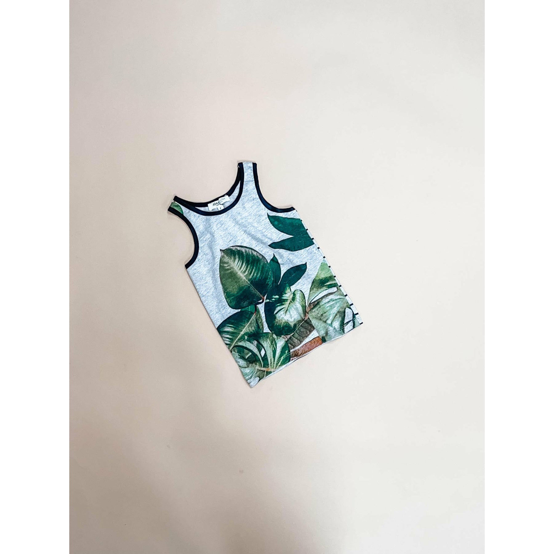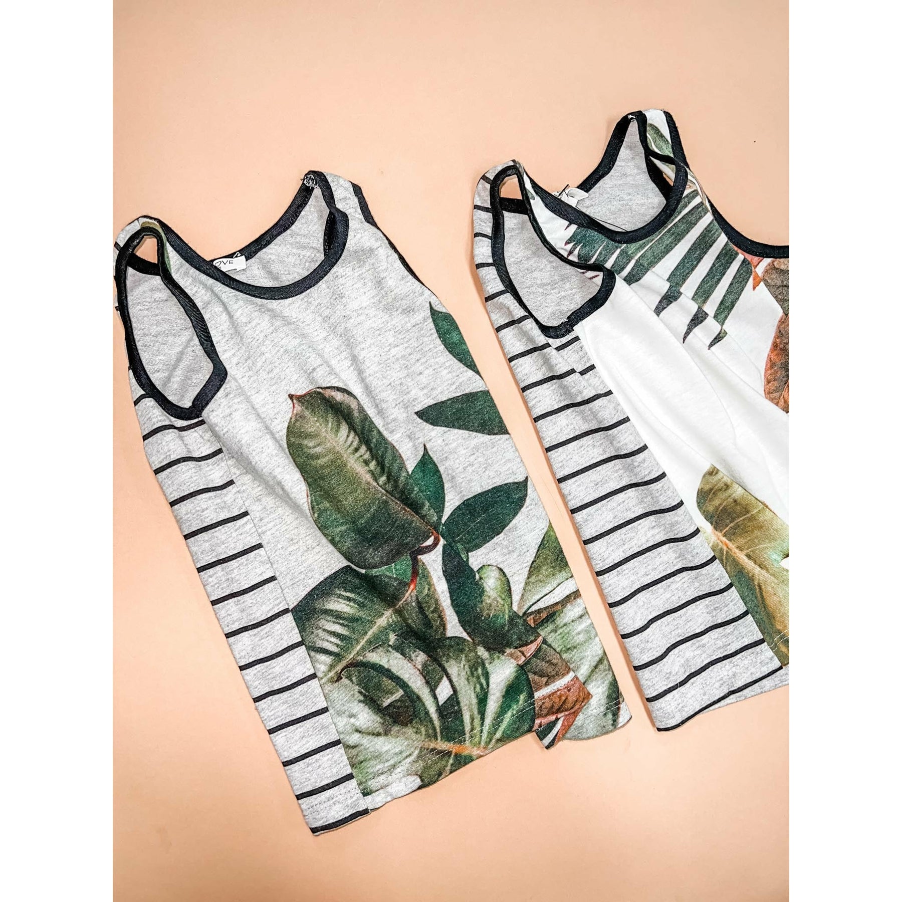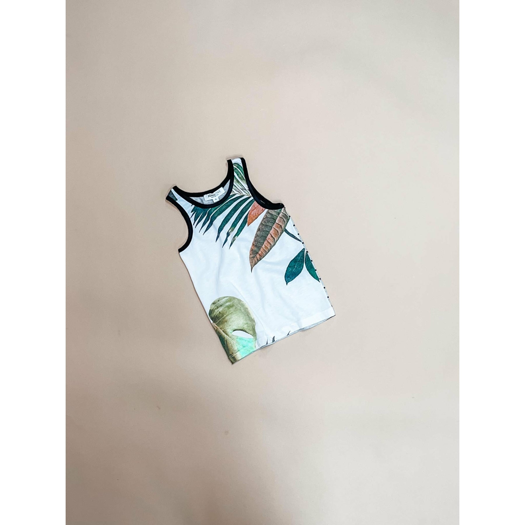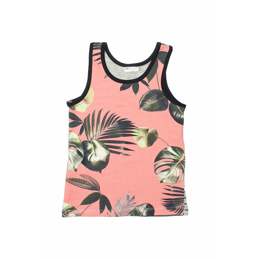 Palm Print Tank Top With Striped Back Detail.