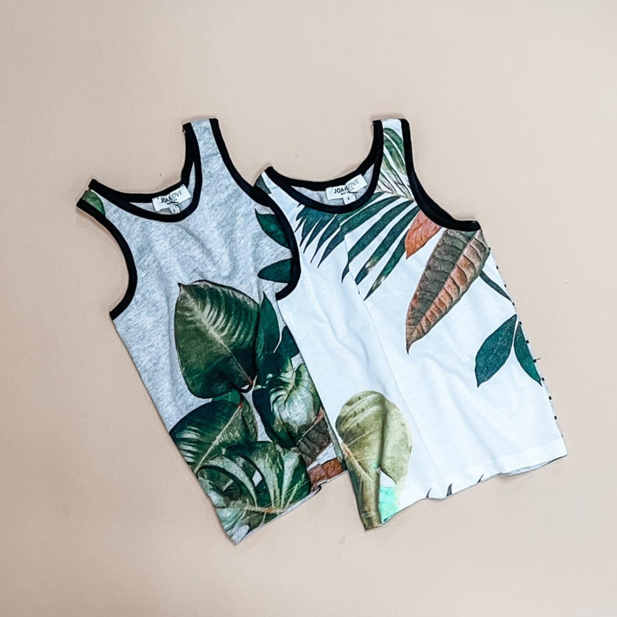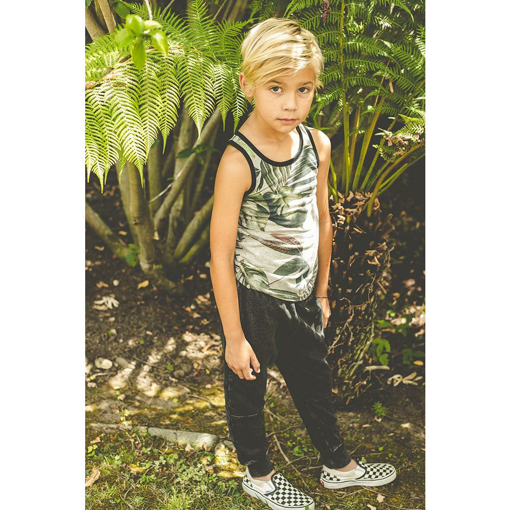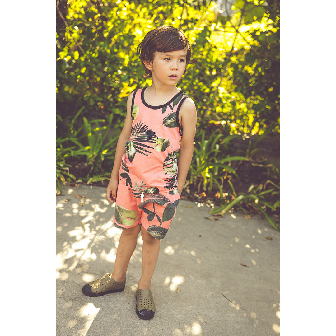 Palm Print Tank Top With Striped Back Detail.