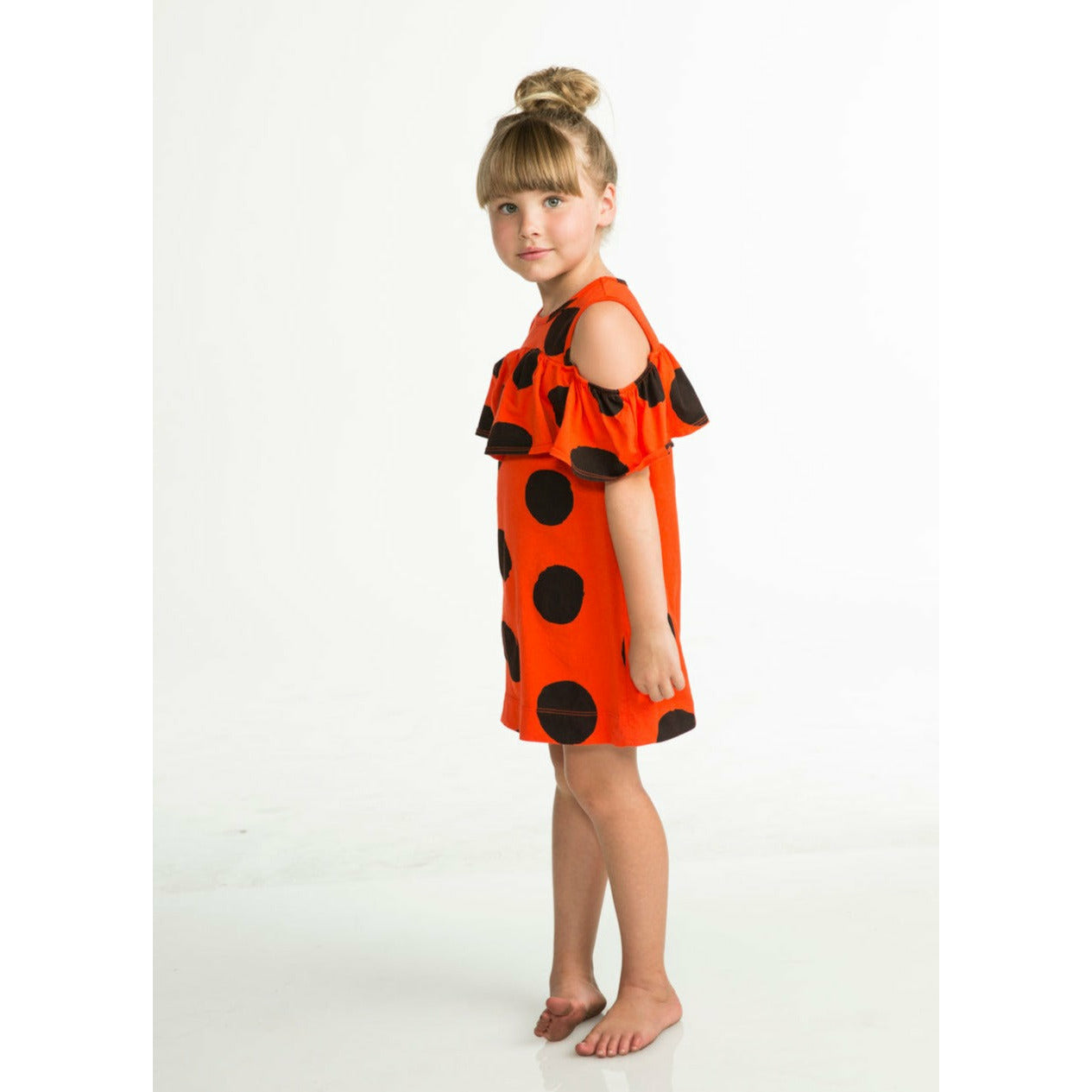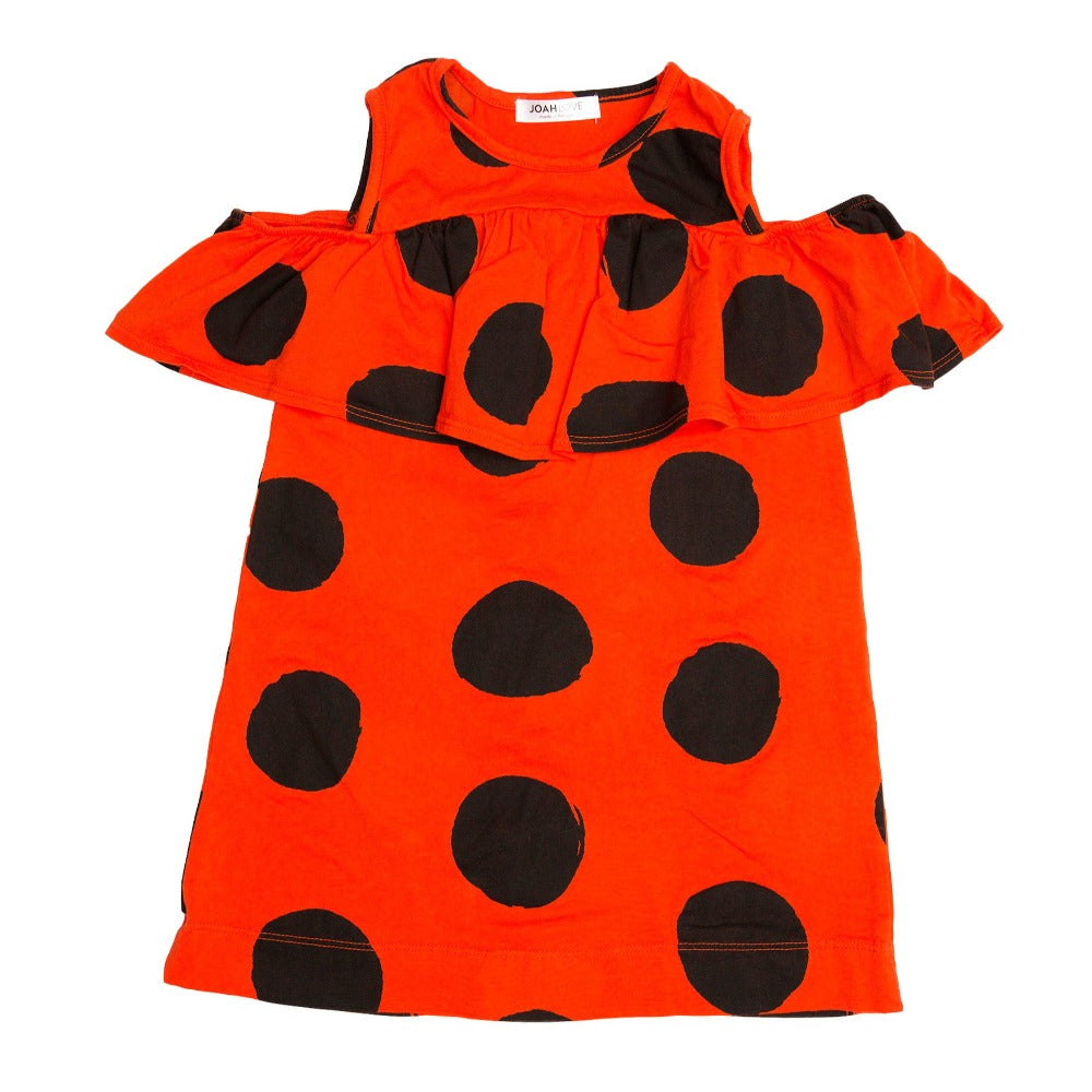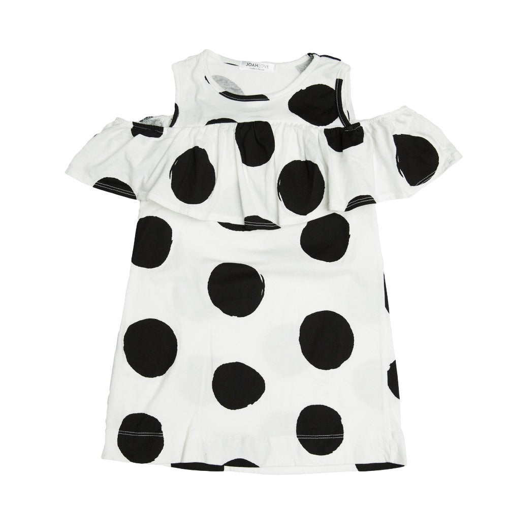 Dot Print Cold Shoulder Dress. Ruffle can be worn under the arms for a different look.