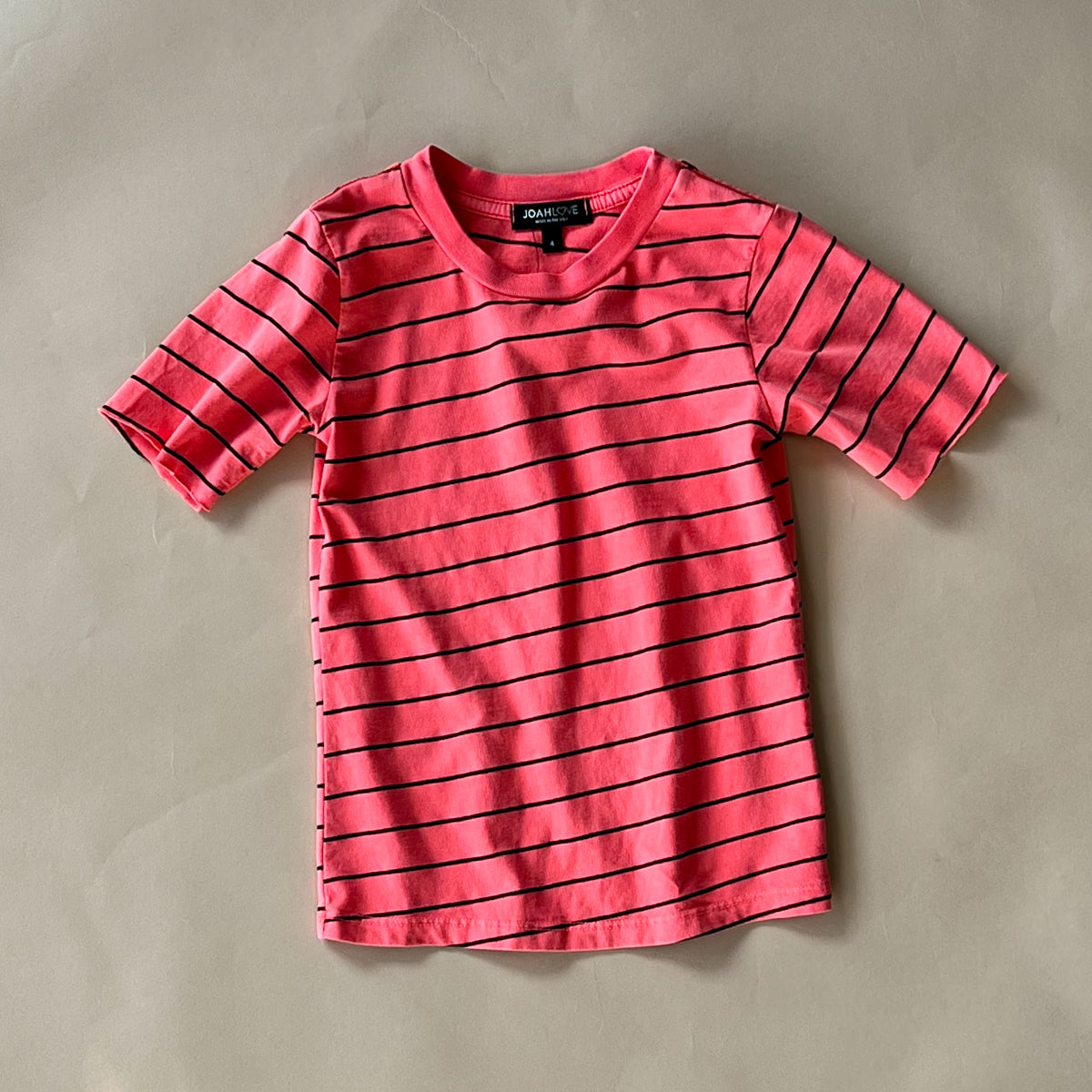 Class short sleeve tee with our twist with raw edge sleeve hem.