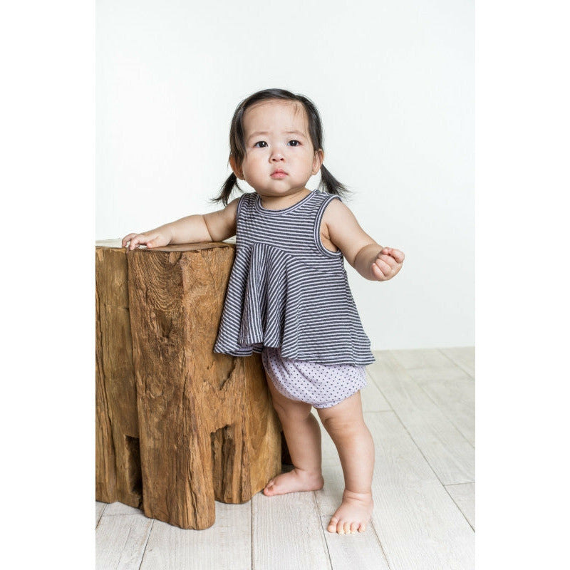 Mini charcoal stripe/polka dot bloomers. Preshrunk. Made in the beautiful USA.