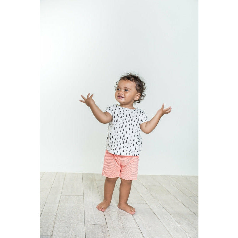 Rain drops print Jayden top. Preshrunk. Made in the beautiful USA.