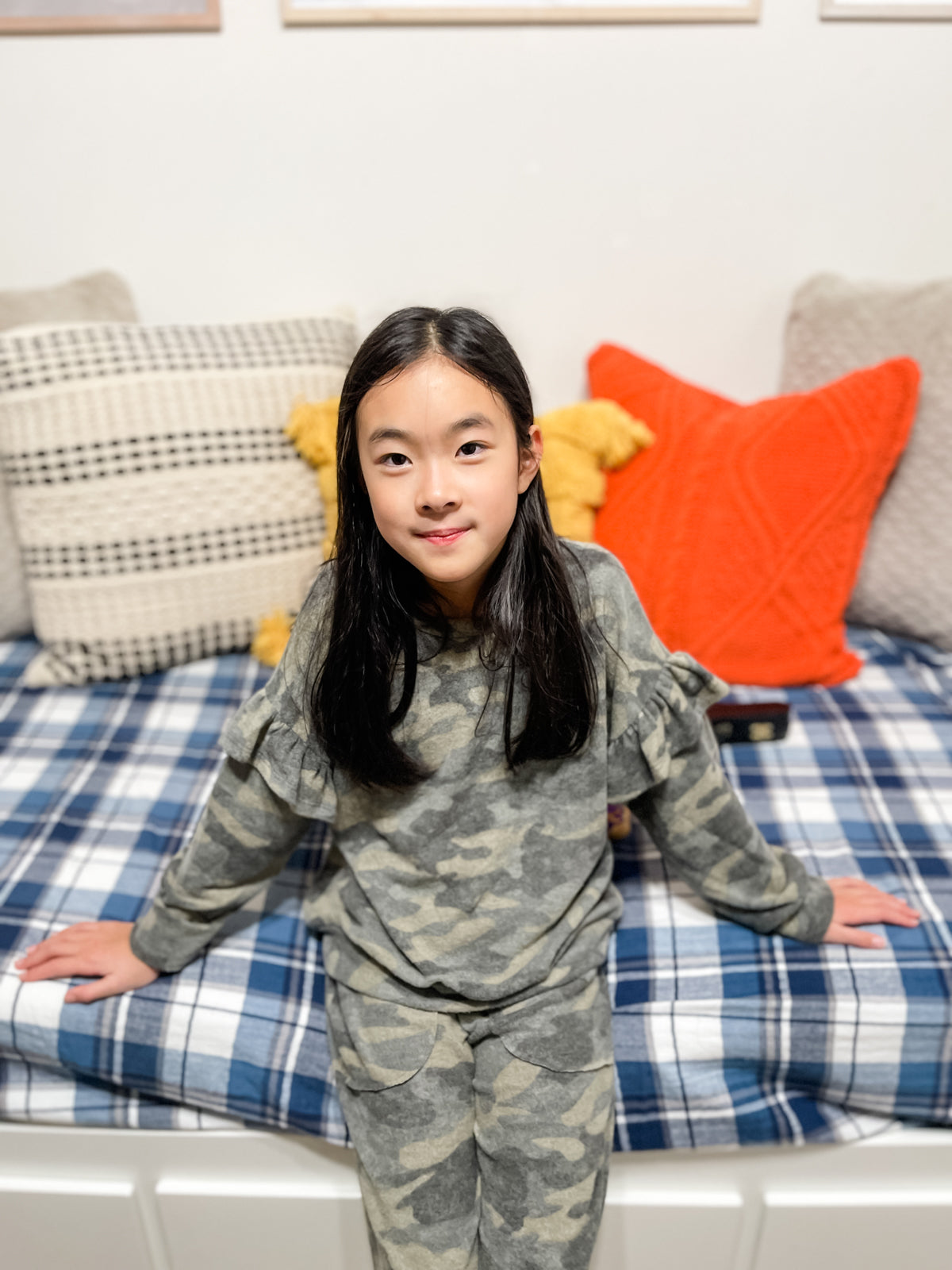 Long-sleeved ruffle top for girls, made with our signature buttery soft, brushed faux cashmere!